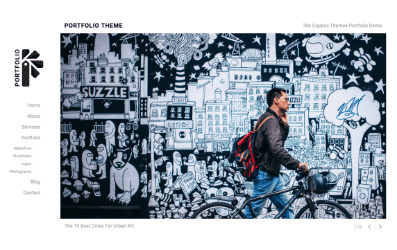 Portfolio Lite is a clean, professional portfolio theme for painters, designers, photographers, and other creatives. The theme has a slideshow page template that generates a slideshow from the content’s initial WordPress image gallery. In the browser window, the slideshow is centered vertically and horizontally. A multi-column portfolio style is also used to display categories. Portfolio Lite is also geared for use with the Gutenberg content editor’s blocks.
